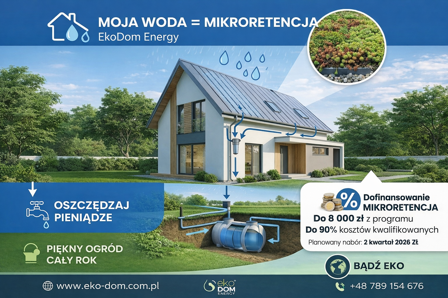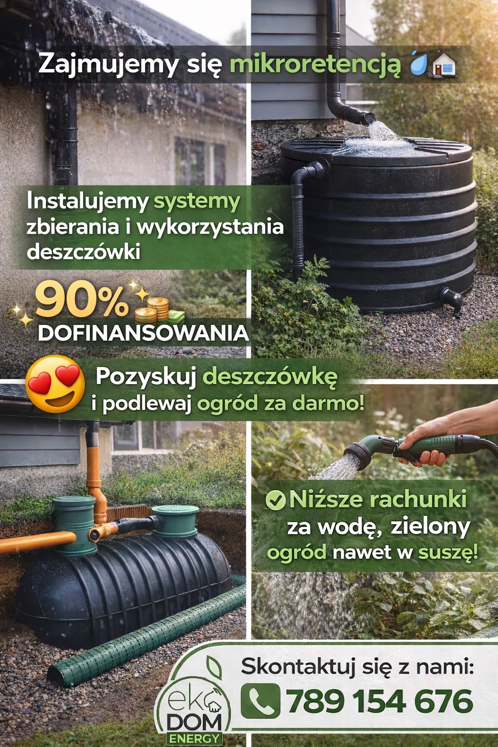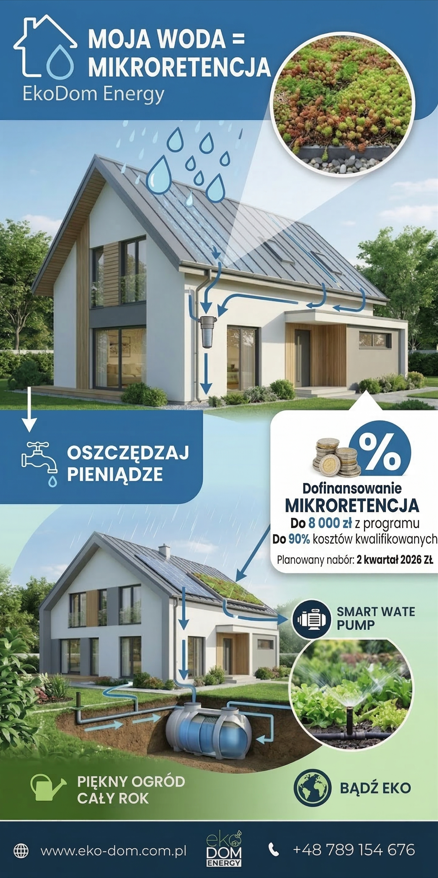DESZCZ TO DARMOWY PIENIĄDZ – NIE POZWÓL MU UCIEKAĆ! Czy wiesz, że podlewanie ogrodu wodą z sieci to najdroższy sposób na utrzymanie zieleni? Czas to zmienić! Program „Moja Woda” powraca, a my pomożemy Ci zgarnąć dofinansowanie na własny system retencji. Twój dom może stać się bardziej samowystarczalny! Zamiast płacić za wodę i odprowadzanie deszczówki, zbieraj ją i wykorzystuj wtedy, gdy nastaną upały. Co możesz sfinansować z dotacji? Podziemne i nadziemne zbiorniki na deszczówkę Systemy nawadniania ogrodu „Zielone dachy” i oczka wodne Instalacje do zbierania wody z rynien (łapacze, filtry, pompy) Z Eko Dom Energy to proste: Audyt: Sprawdzimy, jakie rozwiązanie będzie u Ciebie najefektywniejsze. Formalności: Przygotujemy wniosek o dotację za Ciebie. Realizacja: Zamontujemy sprawdzony system, który będzie służył latami. Nie czekaj na suszę i wysokie rachunki! Zainwestuj w darmową wodę już dziś. Zostaw komentarz „WODA” lub zadzwoń – sprawdzimy, ile możesz zyskać! +48 789 154 676 info@eko-dom.com.pl www.eko-dom.com.pl #MojaWoda #Ekologia #Oszczędzanie #Retencja #EkoDom #Dofinansowanie #Ogród #Deszczówka #CzystePowietrze